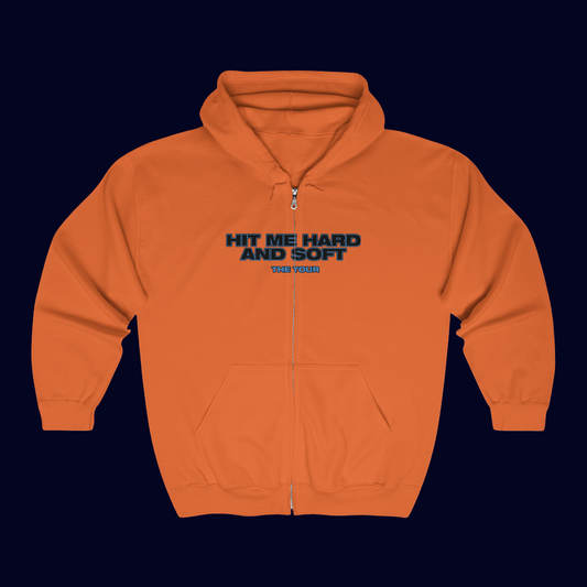 Billie Eilish Merch - Hit Me Hard and Soft Orange Signature Tour Dates Zip Up Hoodie